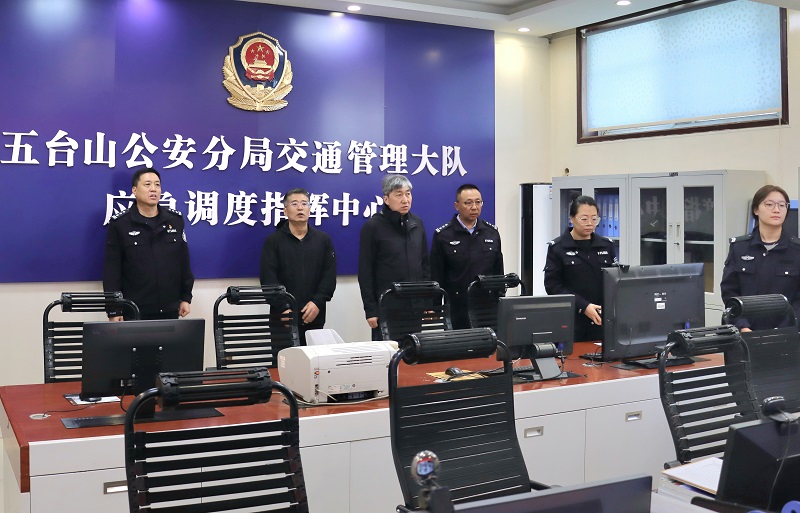 朱曉東在五臺山交警大隊檢查值班值守情況。李行攝