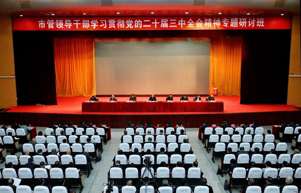 10月9日,市管領導干部學習貫徹黨的二十屆三中全會精神專題研討班開班。市委書記朱曉東出席開班式并作動員講話。他強調(diào),要深入貫徹落實黨的二十屆三中全會和省委十二屆八次全會、市委五屆七次全會精神,高舉改革開放旗幟,堅定扛牢使命任務,牢固樹立“發(fā)展是硬道理、業(yè)績是新?lián)?、交賬是軍令狀”的工作理念,秉持“負責任、動腦筋、講良心”的工作要求,開拓創(chuàng)新、奮發(fā)有為,不斷開創(chuàng)我市進一步全面深化改革新局面,奮力譜寫中國式現(xiàn)代化忻州篇章。市人大常委會主任王珍出席開班式。市委常委、秘書長溫建軍主持開班式。市委常委,市人大常委會、市政府、市政協(xié)負責同志,市中級人民法院院長,忻州職業(yè)技術學院黨委書記,各縣(市、區(qū))委書記出席開班式。
