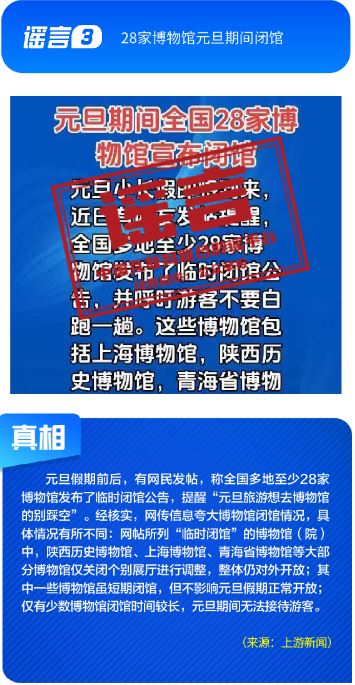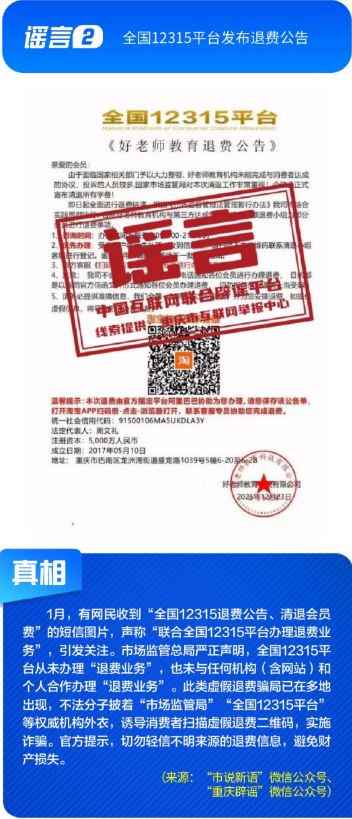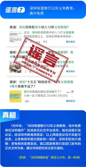 ??公共政策領域謠言誤導公眾決策?!吧绫?]有有效期限制、未到期不能換新卡”是對社??ü芾碚叩恼`讀,給民眾平添困擾;“28家博物館元旦期間閉館”實為少數(shù)博物館根據(jù)運營安排所做的微調(diào),網(wǎng)帖嚴重夸大實際閉館情況,引發(fā)負面炒作;“深圳有望推行12年義務教育,高中免費”是對現(xiàn)行政策的“超前編造”,誤導學生及家長群體;“全國12315平臺發(fā)布退費公告”,則是假冒監(jiān)管機構(gòu)名義散播不實通知,為后續(xù)詐騙行為做鋪墊。