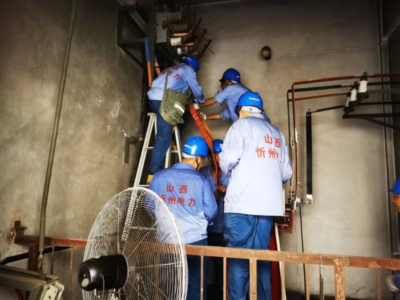 7月27日早8時(shí),國網(wǎng)忻州供電公司保供電小分隊(duì)9人奔赴現(xiàn)場,進(jìn)入小區(qū)配電室的那一瞬間,就被眼前的場景驚到了,配電室內(nèi)地面浸水導(dǎo)致主變地基下沉、變壓器基礎(chǔ)嚴(yán)重傾斜,與之相連的高壓側(cè)設(shè)備基本損壞,母排變形、融管炸裂、觸頭損壞,目測(cè)這里的工作任務(wù)量估計(jì)得干到晚上了。