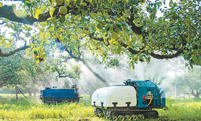 安徽省宿州市碭山縣近年大力推廣“人工智能+數(shù)字果園”模式,推動碭山酥梨產(chǎn)業(yè)智能化、數(shù)字化轉(zhuǎn)型,為鄉(xiāng)村振興和數(shù)字鄉(xiāng)村建設夯實基礎(chǔ)。圖為碭山縣一家果園內(nèi),果園機器人在噴施生物農(nóng)藥。崔 猛攝(人民視覺)