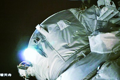 5月11日在北京航天飛行控制中心拍攝的天舟六號(hào)貨運(yùn)飛船與空間站組合體完成交會(huì)對(duì)接的畫面。新華社記者 郭中正攝