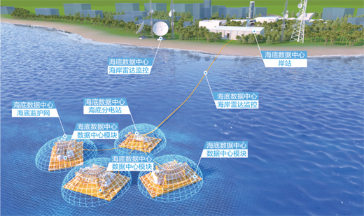 沉入海底的數(shù)據(jù)艙并非就此成為“孤島”,它與岸站、水下分電站和海底光電復合纜共同組成了海底數(shù)據(jù)中心。海底光電復合纜聯(lián)通其余3部分,將電力和網(wǎng)絡(luò)分配到每一個獨立的海底數(shù)據(jù)艙。