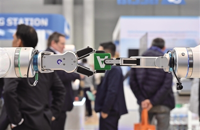 在近日舉行的2024年德國漢諾威工業(yè)博覽會(huì)上,人工智能成為重點(diǎn)關(guān)注的領(lǐng)域之一。圖為會(huì)上一款機(jī)器人在演示傳遞物品。新華社記者 任鵬飛 攝