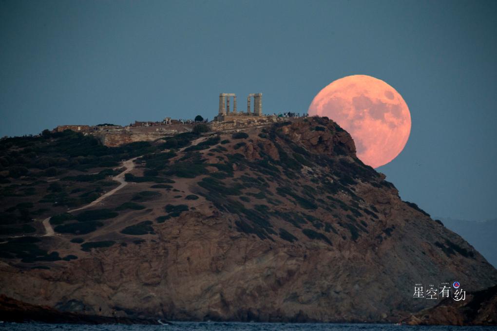2023年8月30日,“超級(jí)月亮”從希臘蘇尼翁角的波塞冬廟上空升起。新華社發(fā)(馬里奧斯·羅洛斯攝)