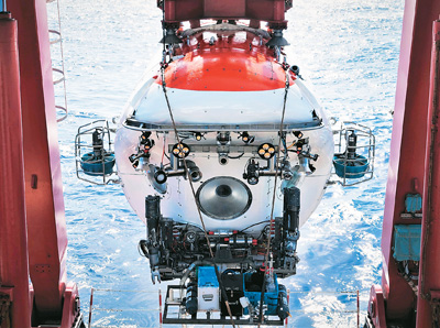 圖為9月11日,“蛟龍?zhí)枴陛d人潛水器在維嘉海山完成2024西太平洋國際航次科考最后一個(gè)潛次下潛作業(yè)。新華社記者 王聿昊攝