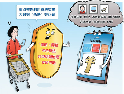 不久前,中央網信辦等四部門聯(lián)合發(fā)布開展“清朗·網絡平臺算法典型問題治理”專項行動通知,明確提出嚴禁利用算法實施大數據“殺熟”。嚴禁利用用戶年齡、職業(yè)、消費水平等特征,對相同商品實施差異化定價行為。