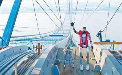 “由于貓道為鏤空的柔性非鋪裝路面,加之高空強風帶來的晃動,對機器人的運動控制、視覺感知、自平衡能力和避障都提出了更高要求?!睓C器人研制方、飛闊科技聯合創(chuàng)始人劉炳政介紹。完成此次挑戰(zhàn),在一定程度上加速著中國智造與中國建造的“雙向奔赴”。