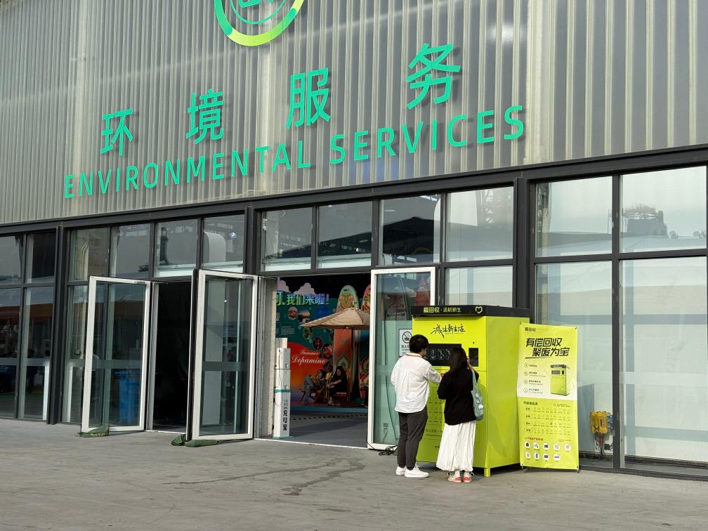 在2025年中國國際服務(wù)貿(mào)易交易會(huì)現(xiàn)場(chǎng),觀眾體驗(yàn)可回收物智能回收機(jī)。新華社記者 田晨旭 攝