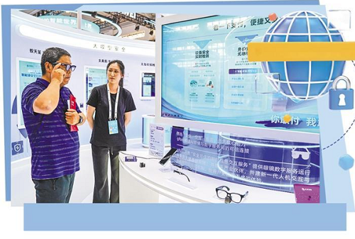 觀眾在云南昆明舉行的2025年國家網(wǎng)絡(luò)安全宣傳周配套活動上體驗智能眼鏡。新華社記者 彭奕凱攝