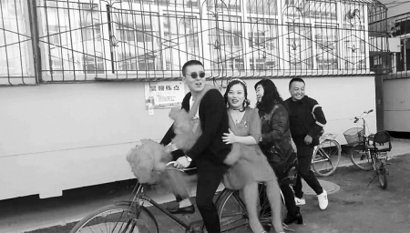 幾天前,這首“騎單車”歌曲里的情景,在太原市小店區(qū)小店街道杜家寨社區(qū)的一場婚禮上再現——新郎幸福地蹬著單車,后座上,美麗的新娘穿著紅色婚紗,甜蜜地靠在新郎背上,他們穿過社區(qū),在沿途眾多鄉(xiāng)鄰、親友的喝彩聲、祝福聲中,舉行了一場特別的單車婚禮。