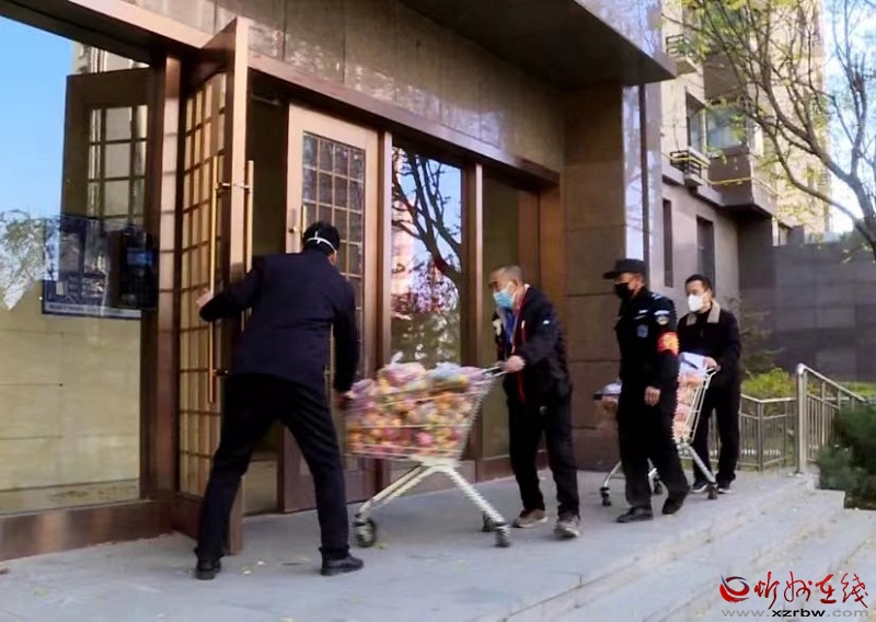 大批裝袋整齊的水果包放在濱河一號小區(qū)樓下,多名物業(yè)工作人員推著便民購物車來回忙碌著,大家統(tǒng)一佩戴口罩,嚴(yán)格做好防護(hù)措施,挨家挨戶送貨上門,并全程避免與業(yè)主接觸,最大限度地保護(hù)廣大群眾的健康與安全。