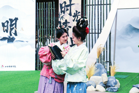 近日,山西傳媒學(xué)院在太原市萬柏林區(qū)萬象城下沉廣場舉辦了“漢服印象”傳統(tǒng)服飾教學(xué)成果展演?;顒蝇F(xiàn)場,35名來自該校的大二學(xué)生,均身著漢、唐、宋、明等朝代的服飾,向現(xiàn)場的觀眾展示了60套獨(dú)具特色的原創(chuàng)設(shè)計(jì)作品,并進(jìn)行了沉浸式國風(fēng)走秀教學(xué)成果展演和氣氛熱烈的古詩詞問答互動節(jié)目。