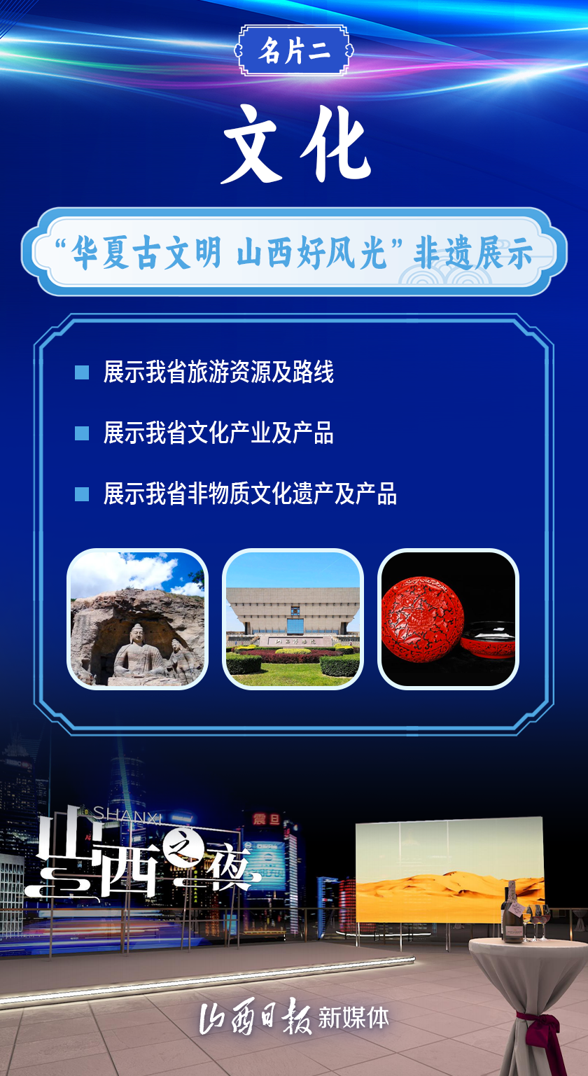 在第六屆中國國際進(jìn)口博覽會開幕之際,“山西之夜”活動將于11月5日晚在上海復(fù)星藝術(shù)中心舉辦?!吧轿髦埂鄙希瑢⒅攸c推出三大展覽展示,這也是開放山西向世界介紹自己的三張名片。
