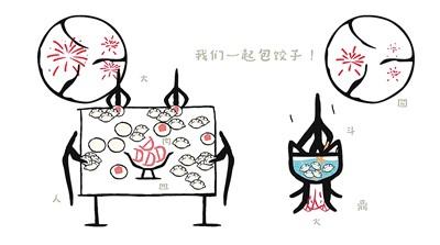 “《用甲骨文的方式打開春節(jié)》的靈感就來自于一位小學(xué)生粉絲的投稿。這位六年級(jí)小朋友經(jīng)常和我們互動(dòng),他畫的甲骨文小人包餃子的場景畫面感和趣味感兼具,‘人’‘鼎’‘皿’‘火’字都包含其中,給了我們很多啟發(fā)。”黃麗潔說,“就在我們打算發(fā)布視頻的前一天,這位小粉絲給我們發(fā)來了他的手稿,我們都覺得眼前一亮,立馬將包餃子的畫面加入視頻當(dāng)中?!?/p>