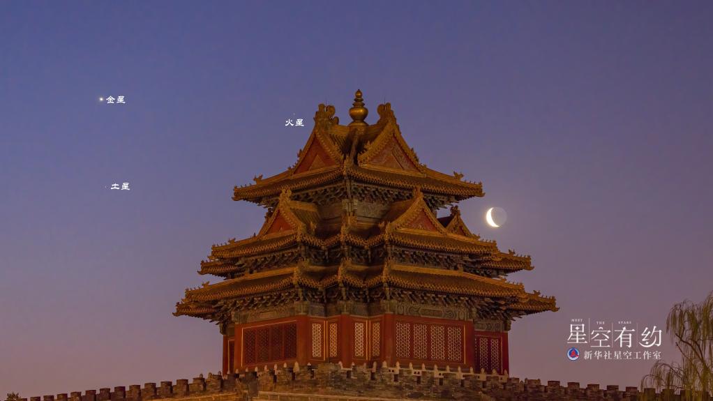 北京星空攝影愛(ài)好者吳魯萍2022年3月28日清晨在北京拍攝的金星、火星、土星與殘?jiān)隆#ū救斯﹫D)