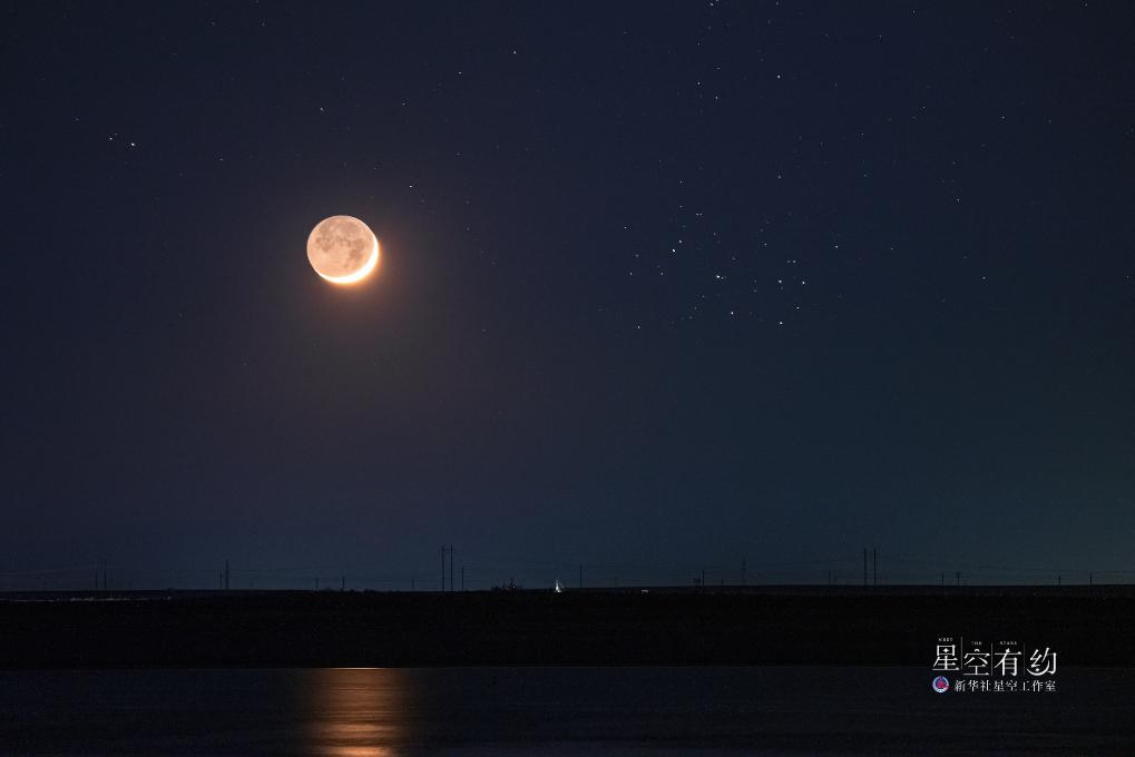 重慶星空攝影愛(ài)好者戴建峰2023年4月22日在新疆克拉瑪依拍攝的昴星團(tuán)伴月。(本人供圖)