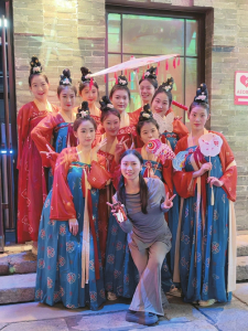 “忻青年”第一個視頻的標(biāo)題是《跟著我們在古城街道上炫起來,民族的才是世界的》。最初的賬號只是推送藝術(shù)團(tuán)在演出之余的短視頻,用于宣傳沉浸式演出《遇見秀容》。民間舞較大眾化,有熟悉的旋律,廣場舞動作簡單又生活化,容易普及。通過短視頻讓更多的人了解忻州古城,看見《遇見秀容》團(tuán)隊(duì)演出之余的生活。