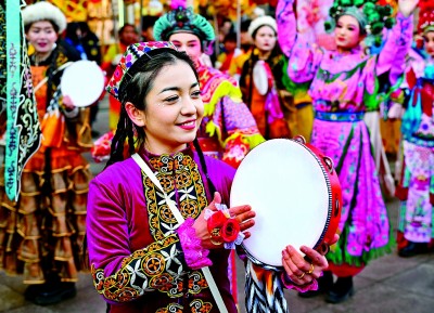 社火鬧年,年復(fù)一年。激昂的鼓點(diǎn)敲出了濃濃的年味,高亢的嗩吶點(diǎn)燃節(jié)日氣氛,各地游客和本地市民駐足觀賞這場(chǎng)文化盛宴,感受巴扎里的新年。