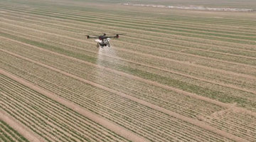 圖為一架正在陜西省渭南市臨渭區(qū)官邸鎮(zhèn)廟王村麥田進行作業(yè)的無人機。(受訪者供圖) 記者從渭南市臨渭區(qū)農(nóng)業(yè)農(nóng)村局了解到,作為陜西重要糧食生產(chǎn)基地,2024年臨渭區(qū)秋播小麥63.5萬畝,由于播期土壤底墑充足,加之降水適期,今年苗情優(yōu)于常年,隨著氣溫回升,麥田春管已全面展開。