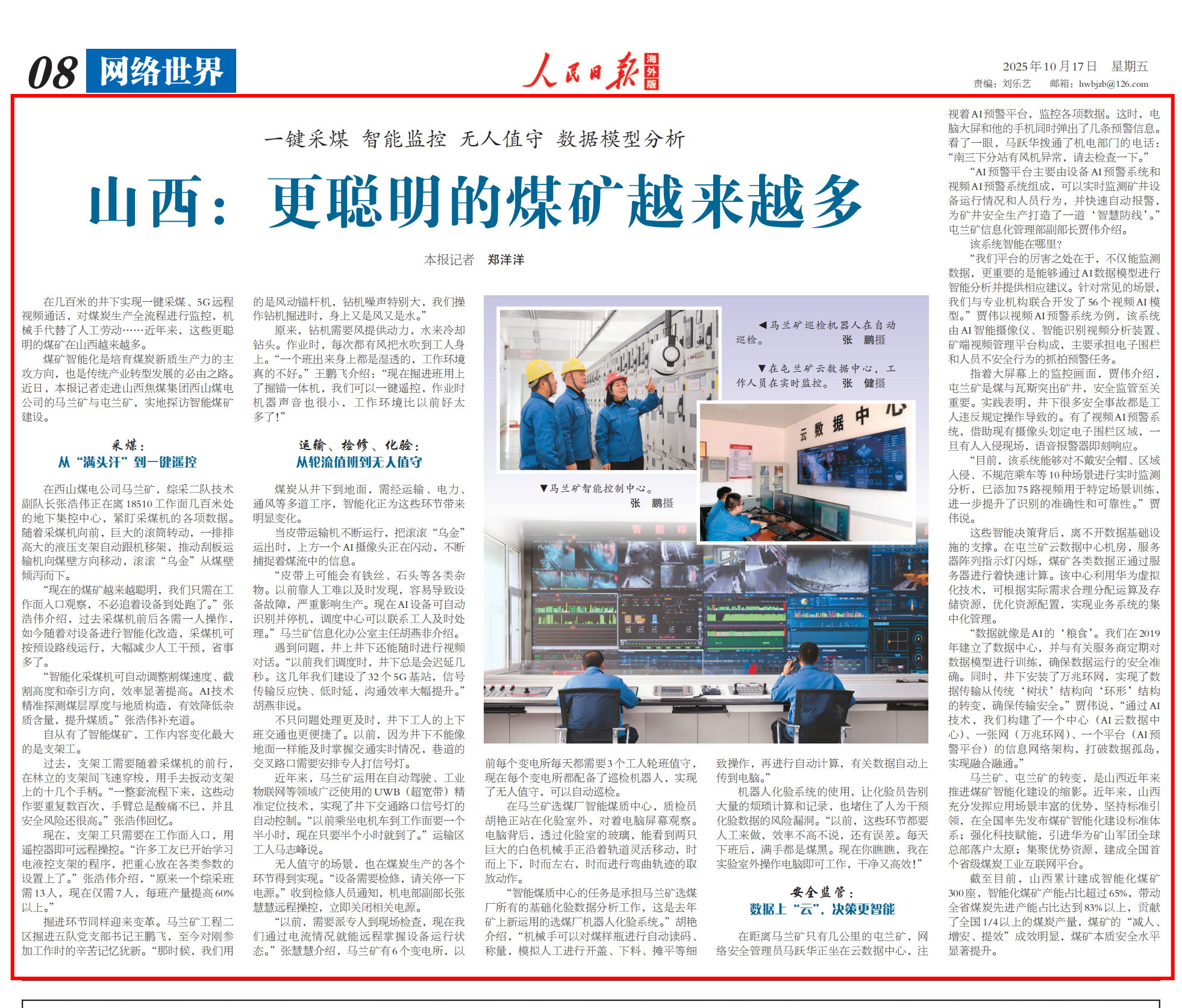 截至目前,山西累計(jì)建成智能化煤礦300座,智能化煤礦產(chǎn)能占比超過65%,帶動全省煤炭先進(jìn)產(chǎn)能占比達(dá)到83%以上,貢獻(xiàn)了全國1/4以上的煤炭產(chǎn)量,煤礦的“減人、增安、提效”成效明顯,煤礦本質(zhì)安全水平顯著提升。