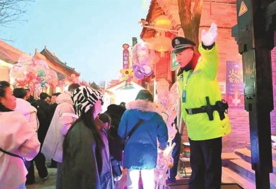 為防止古城局部聚集,忻州市公安局忻府分局實行“定點值守+流動巡邏”相結(jié)合的勤務(wù)模式,將古城分為6個巡區(qū),安排了150名警力,疏導(dǎo)人流、解答各類咨詢,同時在拍照打卡等重點地段循環(huán)廣播提示安全注意事項。