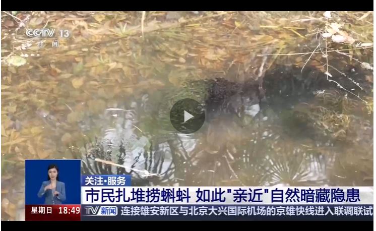 中國林業(yè)科學研究院生態(tài)所副研究員 李佳:還是不要去捕撈它,讓它始終處于一個自然的環(huán)境當中,不要去破壞它,我們自然教育的目標不是把自然帶回家,而是把對自然的愛帶回家,教育孩子溫柔對待一只蝌蚪的時候,未來他也能溫柔對待整個世界。