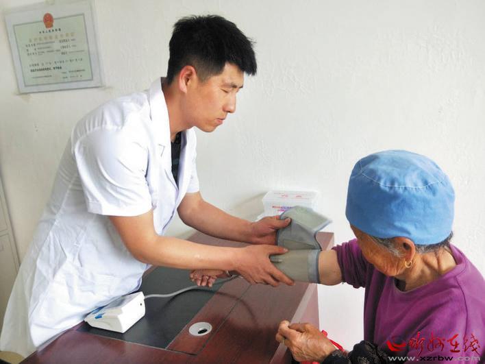 靜樂縣把健康扶貧和關(guān)愛送到村民家門口,為貧困群眾提供了實(shí)實(shí)在在的便利。圖為近日中莊鄉(xiāng)史家?guī)X村鄉(xiāng)村醫(yī)生邱晉德在為村民測量血壓。 閆曉梅 攝