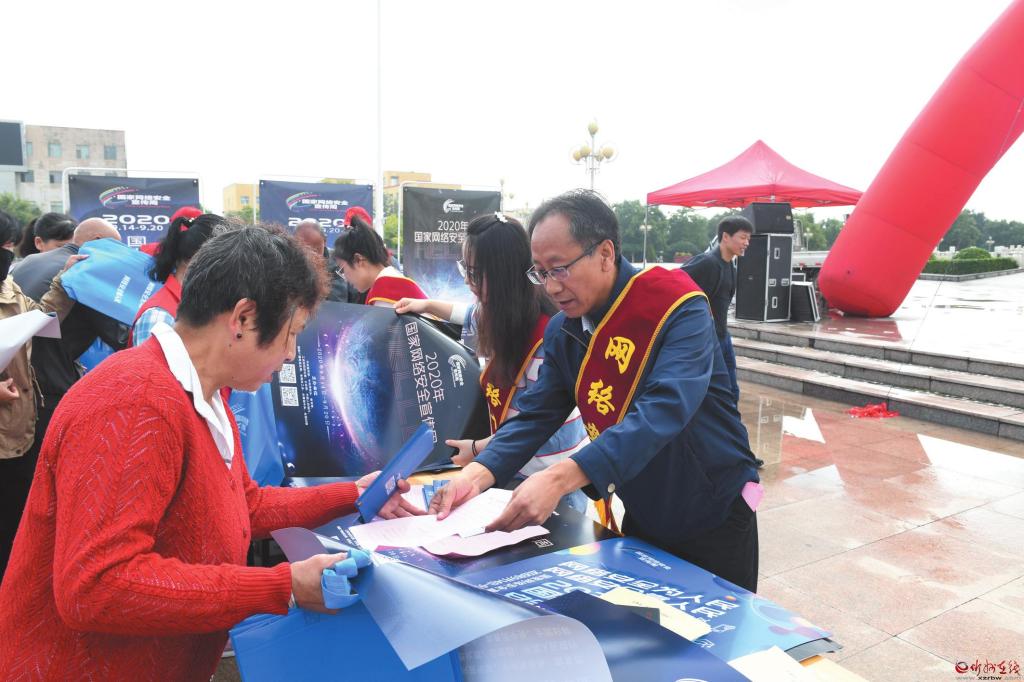 在2020年國家網(wǎng)絡(luò)安全宣傳周活動中,定襄縣采取多部門聯(lián)合的方式,通過懸掛宣傳橫幅、擺放宣傳展板、發(fā)放網(wǎng)絡(luò)安全知識手冊等形式,深入宣傳數(shù)據(jù)安全管理、個人信息保護等方面的法規(guī)、標(biāo)準(zhǔn),并重點圍繞個人信息保護、網(wǎng)上交易辦理、惡意軟件清理、金融詐騙防范等市民關(guān)心關(guān)注的內(nèi)容開展宣講、提供咨詢服務(wù),切實提高廣大人民群眾網(wǎng)絡(luò)安全意識和防護技能,引導(dǎo)廣大群眾依法用網(wǎng)、文明用網(wǎng),營造健康文明的網(wǎng)絡(luò)環(huán)境。圖為9月15日縣城宣傳現(xiàn)場。 張玉虎 攝