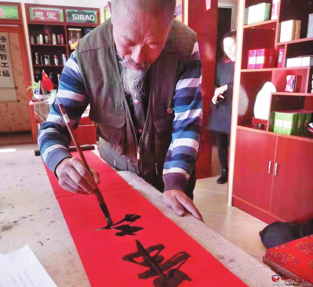 春節(jié)臨近,神池縣書法家協(xié)會組織該縣書法愛好者深入鄉(xiāng)村、企業(yè),為群眾義務(wù)書寫、免費贈送春聯(lián),送上新春的祝福。( 楊晉明 攝)