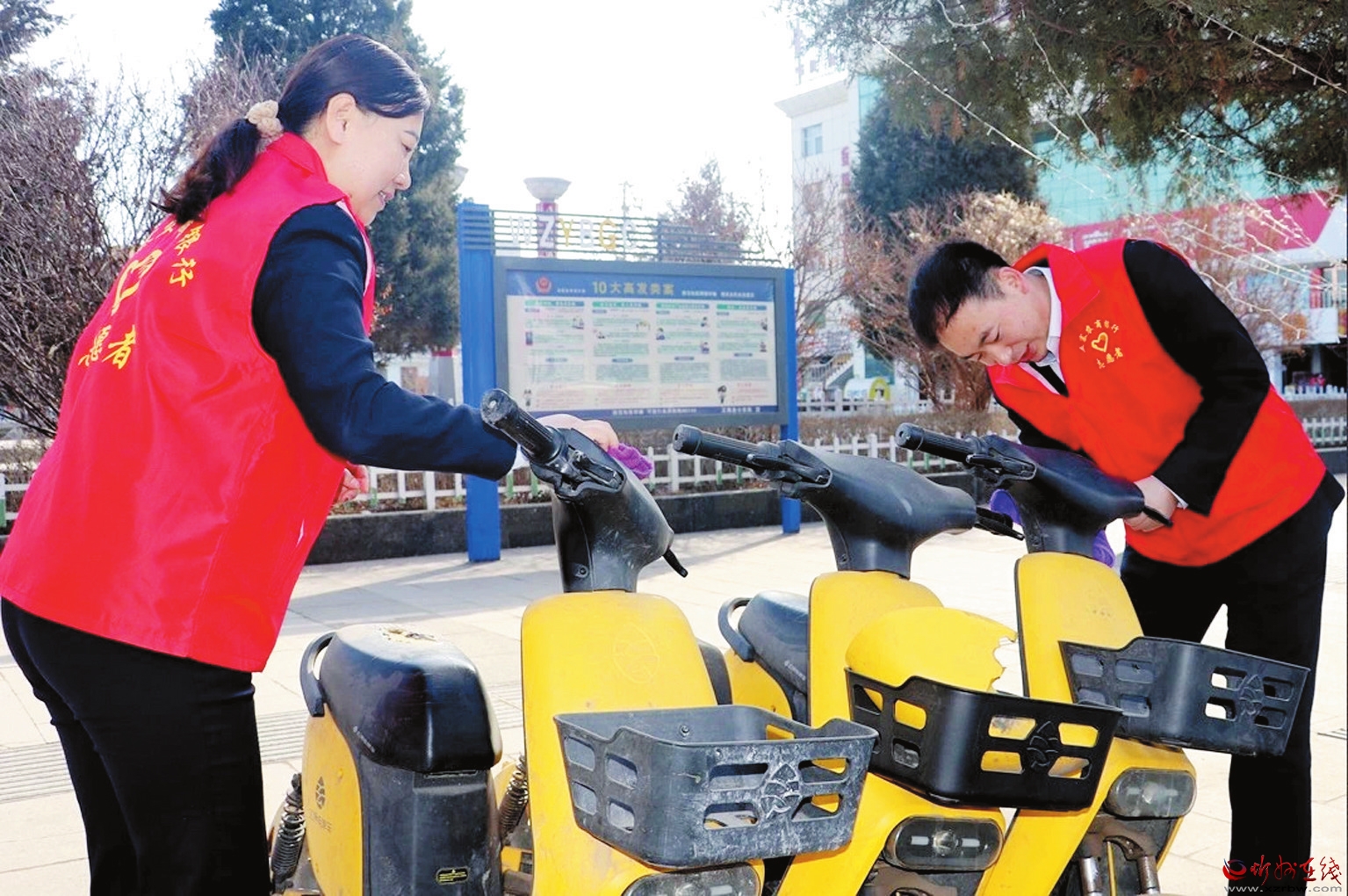 三月春風(fēng)拂揚柳,雷鋒精神閃光芒。為進(jìn)一步弘揚雷鋒精神,推動學(xué)雷鋒活動常態(tài)化,鞏固提升創(chuàng)衛(wèi)成果,營造和諧優(yōu)美環(huán)境,連日來,五寨農(nóng)商銀行機關(guān)黨員志愿服務(wù)隊組織開展了“擦亮共享單車,助力文明出行”志愿服務(wù)活動。(張家源攝)