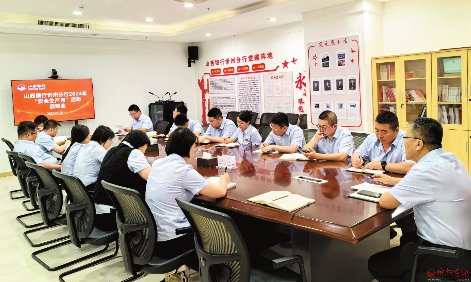 今年6月是第23個(gè)全國(guó)“安全生產(chǎn)月”,主題是“人人講安全、個(gè)個(gè)會(huì)應(yīng)急——暢通生命通道”。為認(rèn)真貫徹落實(shí)上級(jí)部門(mén)安全生產(chǎn)工作部署要求,5月31日,山西銀行忻州分行召開(kāi)“安全生產(chǎn)月”活動(dòng)啟動(dòng)會(huì),要求各責(zé)任主體全面壓實(shí)安全責(zé)任,深入開(kāi)展安全宣傳,堅(jiān)決守牢安全生產(chǎn)底線。啟動(dòng)會(huì)后,全體參會(huì)人員集中觀看了《安全生產(chǎn) 責(zé)任在肩》警示教育片。(秦浩東攝)
