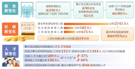 “十四五”時期,我省始終將穩(wěn)就業(yè)擺在突出位置,千方百計促進高質(zhì)量充分就業(yè)。把經(jīng)濟發(fā)展與擴大就業(yè)緊密結合起來,不斷優(yōu)化政策,為企業(yè)減負穩(wěn)崗,累計支出就業(yè)補助資金超90億元,發(fā)放穩(wěn)崗返還資金45億元。對于重點群體精準施策、分類幫扶,開展高校畢業(yè)生等青年群體就業(yè)服務攻堅行動,提供針對性就業(yè)創(chuàng)業(yè)服務。五年來,全省城鎮(zhèn)新增就業(yè)超230萬人,超額完成“十四五”目標任務,城鎮(zhèn)調(diào)查失業(yè)率控制在目標以內(nèi)。