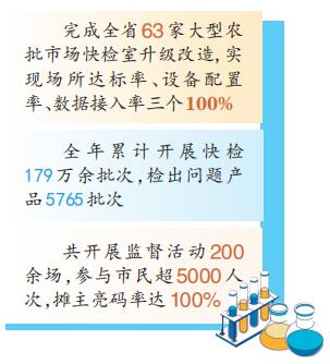 完成全省63家大型農(nóng)批市場(chǎng)快檢室升級(jí)改造,實(shí)現(xiàn)場(chǎng)所達(dá)標(biāo)率、設(shè)備配置率、數(shù)據(jù)接入率三個(gè)100%;通過(guò)高頻次檢測(cè),實(shí)現(xiàn)農(nóng)批市場(chǎng)經(jīng)營(yíng)主體100%覆蓋;食用農(nóng)產(chǎn)品追溯,入場(chǎng)經(jīng)營(yíng)戶“一戶一碼”賦碼率100%……