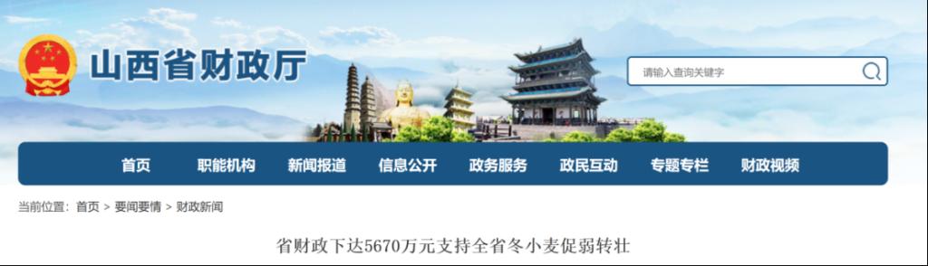 山西省財(cái)政下達(dá)5670萬(wàn)元支持全省冬小麥促弱轉(zhuǎn)壯