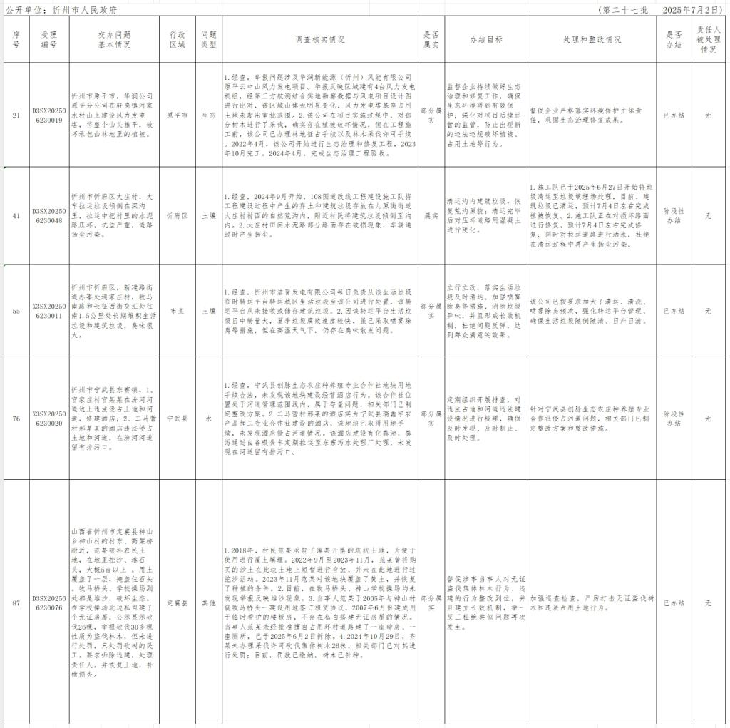 中央生態(tài)環(huán)境保護(hù)督察組群眾信訪舉報(bào)轉(zhuǎn)辦和邊督邊改公開(kāi)情況一覽表(第二十七批)