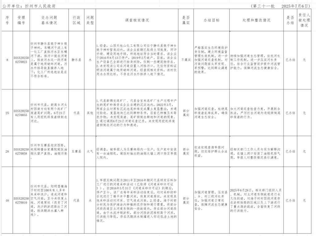 中央生態(tài)環(huán)境保護(hù)督察組群眾信訪舉報(bào)轉(zhuǎn)辦和邊督邊改公開(kāi)情況一覽表(第三十一批)