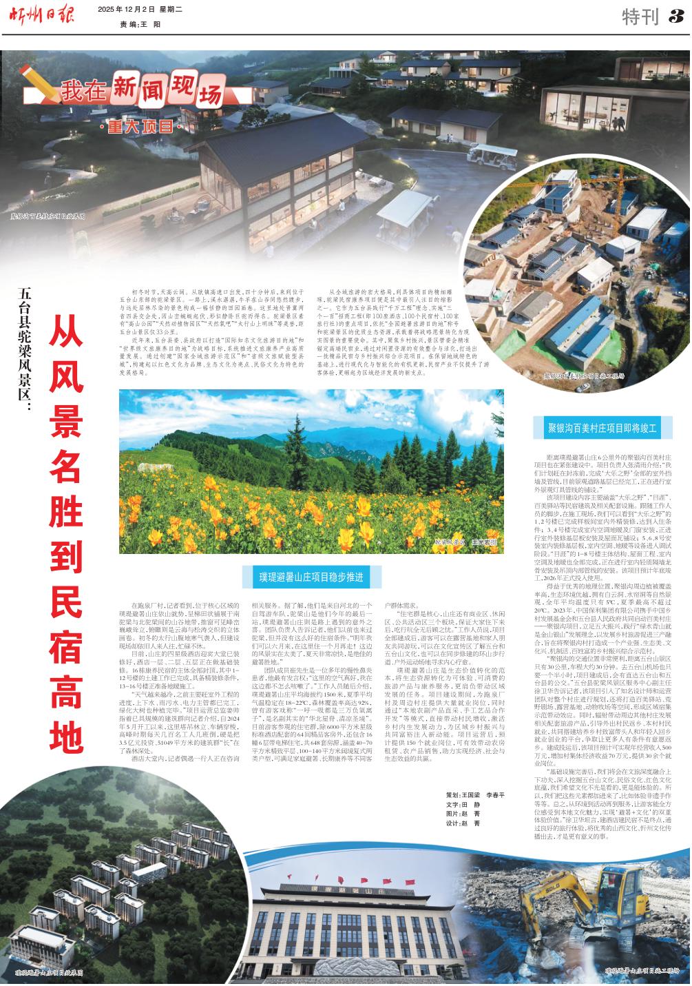 在跑泉廠村,記者看到,位于核心區(qū)域的璞瑅避暑山莊依山就勢,呈梯田狀鋪展于南駝梁與北駝梁間的山谷地帶,推窗可見峰巒巍峨聳立,俯瞰則是云海與松濤交織的立體畫卷。初冬的太行山腹地寒氣襲人,但建設(shè)現(xiàn)場卻依舊人來人往,忙碌不休。