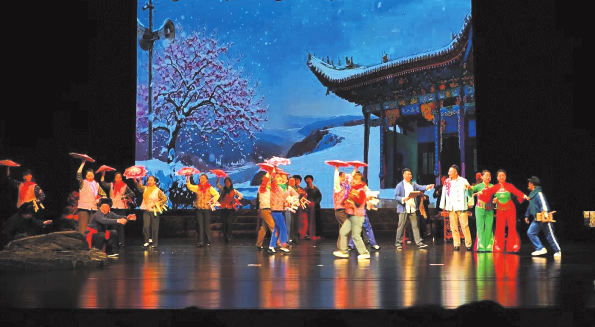 特別值得一提的是,這部劇的全體演員都是河曲本地的民歌二人臺演員。他們中無一人有過音樂劇表演經(jīng)驗,卻憑著對家鄉(xiāng)文化的熱愛與敬畏,勇敢地踏出了舒適區(qū),從零開始學(xué)習(xí)臺詞、表演、走位、情緒表達(dá),最終在舞臺上完整呈現(xiàn)了一部結(jié)構(gòu)嚴(yán)謹(jǐn)、情感飽滿的非遺音樂劇。他們的成長,不僅是藝術(shù)的跨越,更是文化自信的生動寫照。
