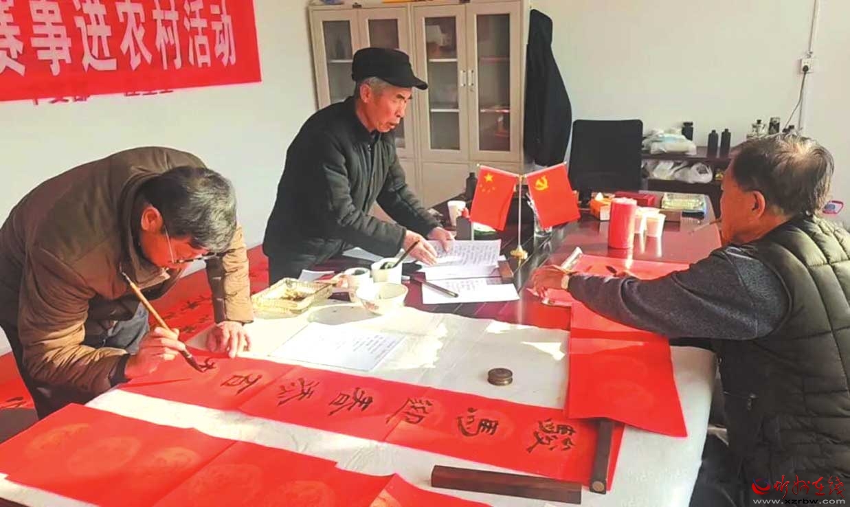 “文化進村·春聯(lián)送福”新年寫對聯(lián)活動現(xiàn)場。