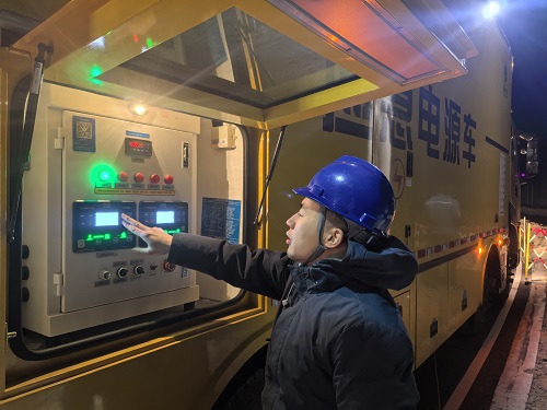 夜色徹底吞沒山巒,氣溫驟降至零下,遠處山影只剩模糊輪廓。保電隊員們裹緊工裝,在寒風里反復校驗接線端子。23時40分,隨著合閘指令下達,第一輛中壓發(fā)電車正式啟動,低沉的轟鳴在山谷間回蕩,穩(wěn)定電流順利注入線路。來不及片刻休整,隊員們又馬不停蹄地奔赴下一個點位。