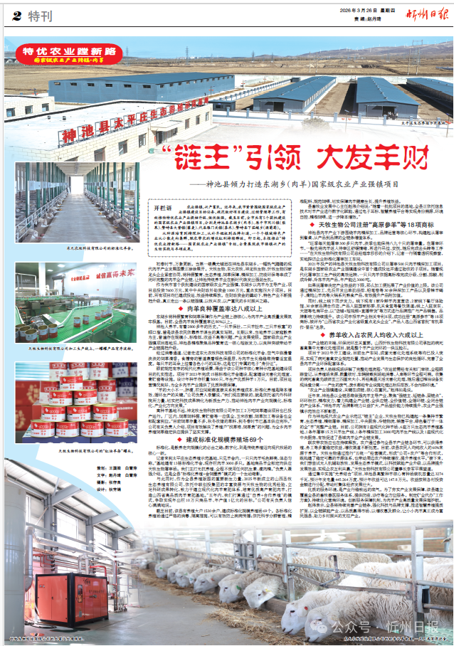 初春時(shí)節(jié),萬象更新。當(dāng)?shù)谝豢|晨光鋪灑在神池縣東湖鄉(xiāng),一幅熱氣騰騰的現(xiàn)代肉羊產(chǎn)業(yè)發(fā)展圖景正徐徐展開。天牧生物、東元農(nóng)牧、神龍牧生物、忻牧生物四家龍頭企業(yè)緊密協(xié)同,將種源繁育、生態(tài)養(yǎng)殖、飼草保障、精深加工、防疫環(huán)保等串成了閉環(huán)完整的肉羊全產(chǎn)業(yè)鏈,讓神池傳統(tǒng)養(yǎng)羊業(yè)在新時(shí)代煥發(fā)出強(qiáng)勁生機(jī)。