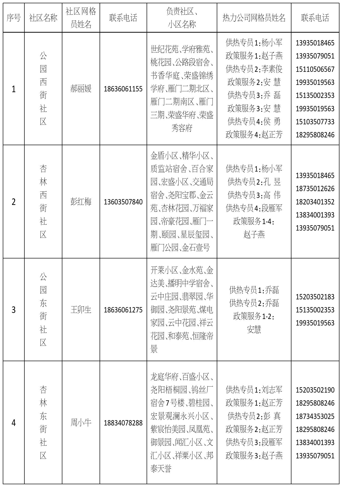 忻州城區(qū)供熱三片區(qū)網(wǎng)格員信息公示