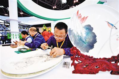 第四屆山西文化產業(yè)博覽交易會上的刻瓷工藝展示。新華社發(fā)