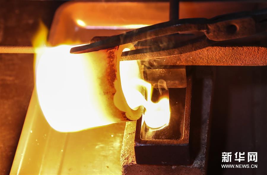 在南京金線金箔總廠,工人將熔化的金水倒入容器(2019年12月12日攝)。68歲的王必生是江蘇南京人,1973年進(jìn)入南京金箔鍛制技藝項(xiàng)目保護(hù)單位——南京金線金箔總廠,師從老藝人譚柱石,他虛心學(xué)習(xí),潛心鉆研,很快掌握打金箔的技藝。他致力于技術(shù)革新和改造,參與機(jī)械打箔機(jī)、自動(dòng)打箔機(jī)的研制。2009年他被評(píng)為國(guó)家級(jí)非物質(zhì)文化遺產(chǎn)項(xiàng)目南京金箔鍛制技藝代表性傳承人。 金箔鍛制技藝,俗稱“打金箔”,歷史悠久。在南京一些地方,金箔生產(chǎn)仍然延用古代傳下的制作工序,鍛制過(guò)程包括化金條、拍葉、做捻子、沾捻子、打開(kāi)子、裝開(kāi)子、出具、切箔等。 金箔廣泛應(yīng)用于建筑裝飾,還可應(yīng)用于雕塑、工藝品、書(shū)畫(huà)、食品藥品、服飾等方面的貼金裝飾和制作。南京金箔品種有真金箔、銅箔、銀箔、鋁箔,薄如蟬翼、色澤純正、厚薄均勻,產(chǎn)品銷往海內(nèi)外。 目前,王必生所在的南京金線金箔總廠是國(guó)家級(jí)非物質(zhì)文化遺產(chǎn)代表性項(xiàng)目保護(hù)單位。工廠把人工打金箔的遺址保護(hù)起來(lái),并成立了金箔大師工作室,加強(qiáng)金箔技藝的推廣,加大傳承人的培養(yǎng)力度。已經(jīng)退休的王必生被工廠返聘,負(fù)責(zé)打箔技藝展示和傳承。他說(shuō),現(xiàn)在機(jī)器打箔越來(lái)越多,但人工打出的金箔的更加柔軟,齊整。他希望這一傳統(tǒng)技藝能夠繼續(xù)傳承下去。新華社記者 楊磊 攝