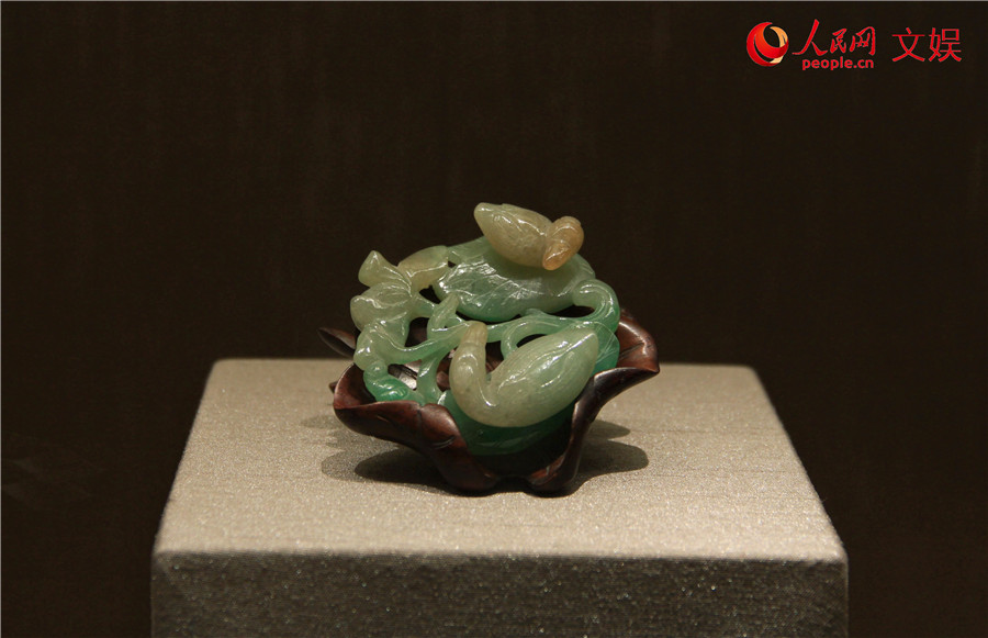 清代翡翠鴛鴦荷花件。人民網(wǎng) 孟麗媛攝