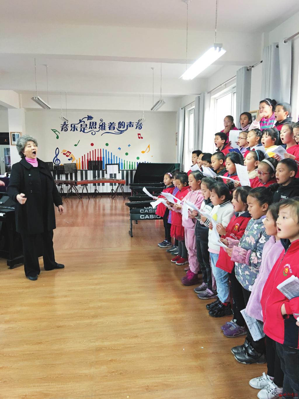 李克為靜樂童聲合唱團排練節(jié)目