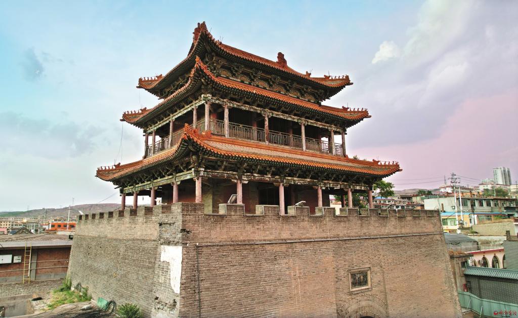 河曲縣城,北漢劉崇置雄勇鎮(zhèn)。宋太平興國七年(982年),改置火山軍,移治于鎮(zhèn)西30里。治平四年(1067年),又置火山縣,縣不久廢。金大定二十二年(1182年),升為火山州,又改隩州。金貞元年,置河曲縣。元憲宗七年州縣俱省入保德州。元至正二十八年(1368年),尚鎮(zhèn)撫截南面,另筑小城,形如葫蘆,三面皆臨深溝。明初洪武二年(1369年),仍置河曲縣。洪武六年復(fù)廢,十四年又置。明景泰元年(1450年),擴展增修。周六里,門二,東曰朝天;西曰威遠。弘治間,知縣李邦彥重修。萬歷間,邑給諫苗朝陽建議興筑,易土以磚,巡撫侯于趙同意其議,請于朝。調(diào)平潞等軍備材料以包砌。計高三丈五尺,石基七尺,并增修內(nèi)外女墻,兩門層樓,疏渠水道分三鋪,使城中積水下流,不至浸損城基。順治五年(1648年),巡撫祝世昌檄副使徐淳、知縣馬云章,捐資繕修城墻,開筑南門洞,廣五丈,高四丈有奇,內(nèi)外包城各十五丈,石基入土七尺。題曰“觀文”,上建城樓一座。題匾曰“清嘯閣”。西南增建城角樓一座,題匾曰“庾公樓”。