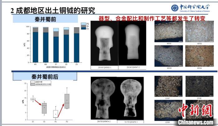 羅武干介紹說,此前罕見從銅冶金考古視角對(duì)秦并蜀進(jìn)行解讀工作。他們這次利用類型學(xué)、X光成像、合金成分及金相顯微組織、微量元素、鉛同位素等分析方法對(duì)秦并蜀前后蜀地銅鍪與銅鉞兩類青銅器進(jìn)行分析,研究發(fā)現(xiàn)秦并蜀后,蜀地銅鉞與銅鍪的器型、合金技術(shù)、制作工藝及銅、鉛礦源均發(fā)生一定程度的變化。