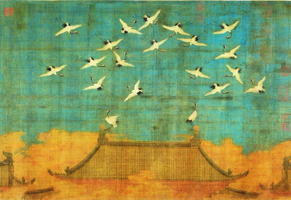 北宋政和二年(1112年)上元節(jié)次夕,天清氣朗,群鶴飛鳴,盤旋于宮殿上空,久久不肯離去。這讓宋徽宗趙佶產(chǎn)生了“仙鶴告瑞”的聯(lián)想,故欣然命筆,將目睹的這一幕繪于絹素之上,一幅千古名作《瑞鶴圖》就此誕生。在題畫詩中,趙佶以瘦金體記述了事件原委。他在詩中將群鶴與古籍中提及的祥鸞、赤雁相提并論,還特意強(qiáng)調(diào)了鶴與長(zhǎng)生不老的關(guān)聯(lián),將它們與蓬萊仙山聯(lián)系在一起,指出其壽命能夠長(zhǎng)達(dá)千年。雖然趙佶的祥瑞之愿難免落空,但鶴確實(shí)是一種長(zhǎng)壽的動(dòng)物。人工飼養(yǎng)的丹頂鶴能活到七十多歲,這相對(duì)于古人的平均壽命,實(shí)在是很可觀了。